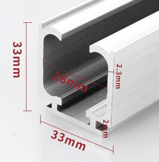 Sử dụng cùng hệ ray trượt - Quy cách: 33mm*33mm - Vật liệu:Hợp kim nhôm - Màu:Bạc - Chiều dài : 2md, 3md |