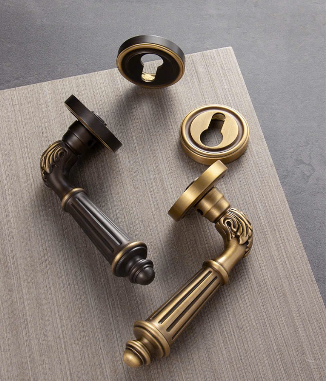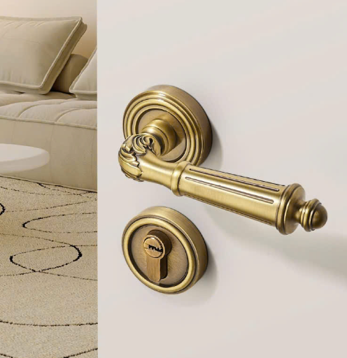 Khóa cửa Đồng thau tay gạt hoa văn cổ điển BR5-23111 kết hợp với CÁC PHỤ KIỆN ĐỒNG MÀU sẽ tôn thêm đẳng cấp sang trọng cho Bộ cửa không gian nhà bạn