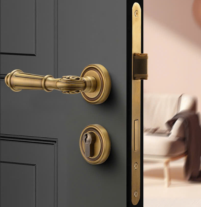Thiết kế lấy cảm hứng từ phong cách Pháp cổ điển, tay nắm được thiết kế dạng sọc kẻ, với chạm khắc hoa văn tinh xảo kết hợp cùng thân khóa chắc chắn, sản phẩm không chỉ đảm bảo an ninh mà còn là điểm nhấn trang trí, thể hiện gu thẩm mỹ và đẳng cấp