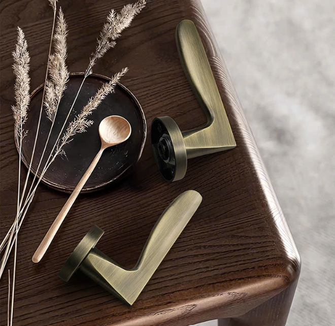 Khoá cửa Đồng thau Kết hợp Đá cẩm thạch - Màu đồng Pháp