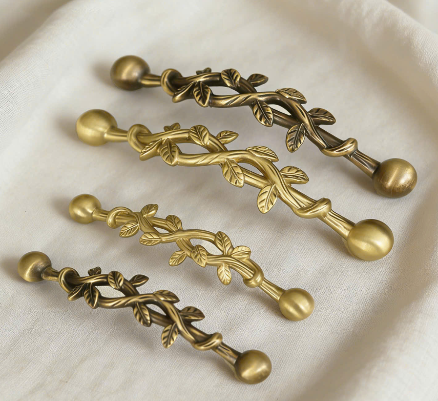 Tay nắm Đồng thau Cành lá - Màu Đồng Pháp