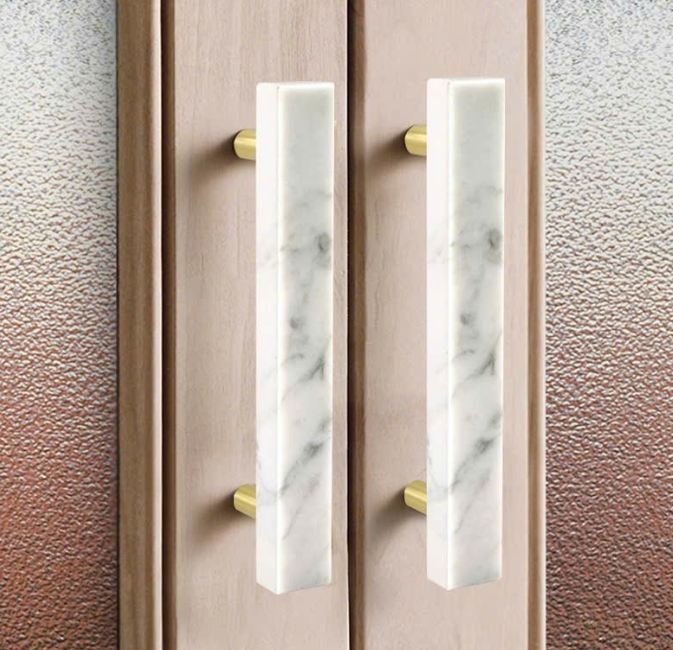 Tay nắm Đồng thau Kết Hợp đá Cẩm thạch MàuTrắng - Dạng Thanh Vuông