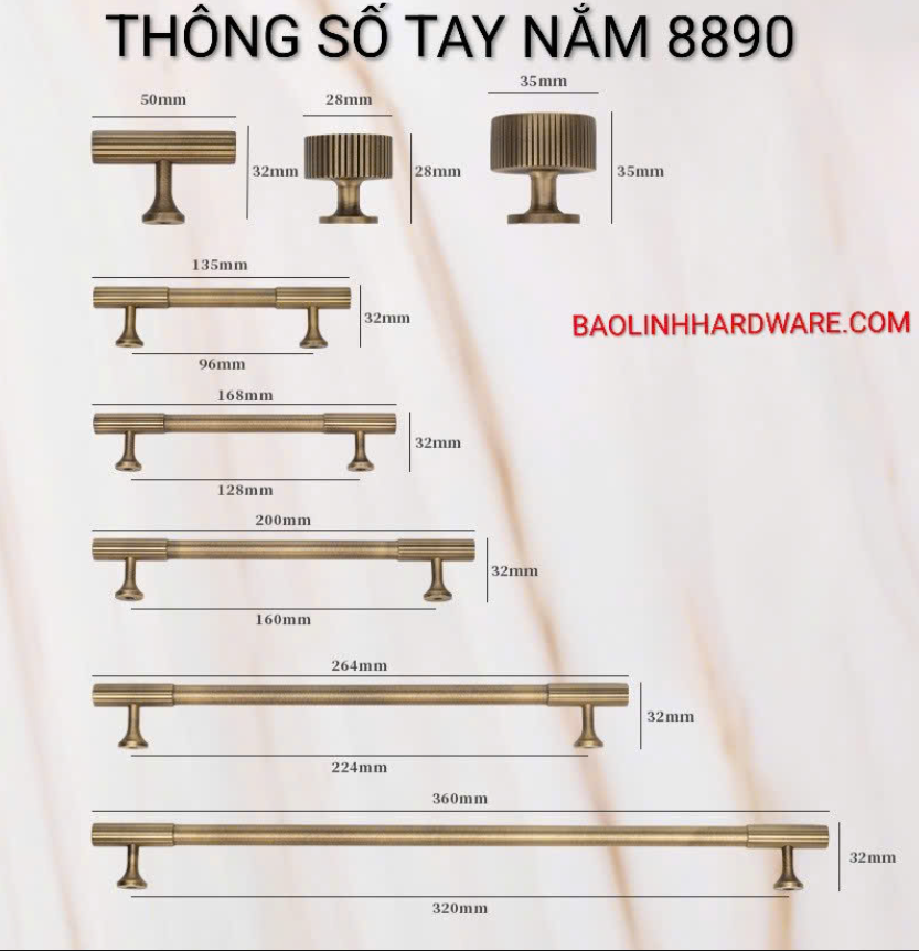 Thông số tay nắm Đồng thau Retro kiểu Pháp Cổ điển BL 8890